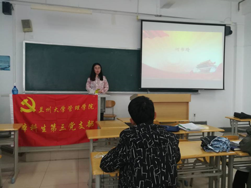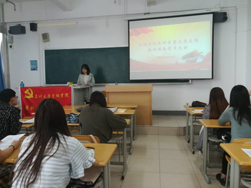 2019年4月24日上午,管理学院本科生第三党支部党员发展大会在天山堂A314顺利召开。本次会议主持人为第三党支部副书记蒋影同志,出席会议的还有第三党支部书记张舒婷同志、正式党员、预备党员、发展对象和积极分子。
