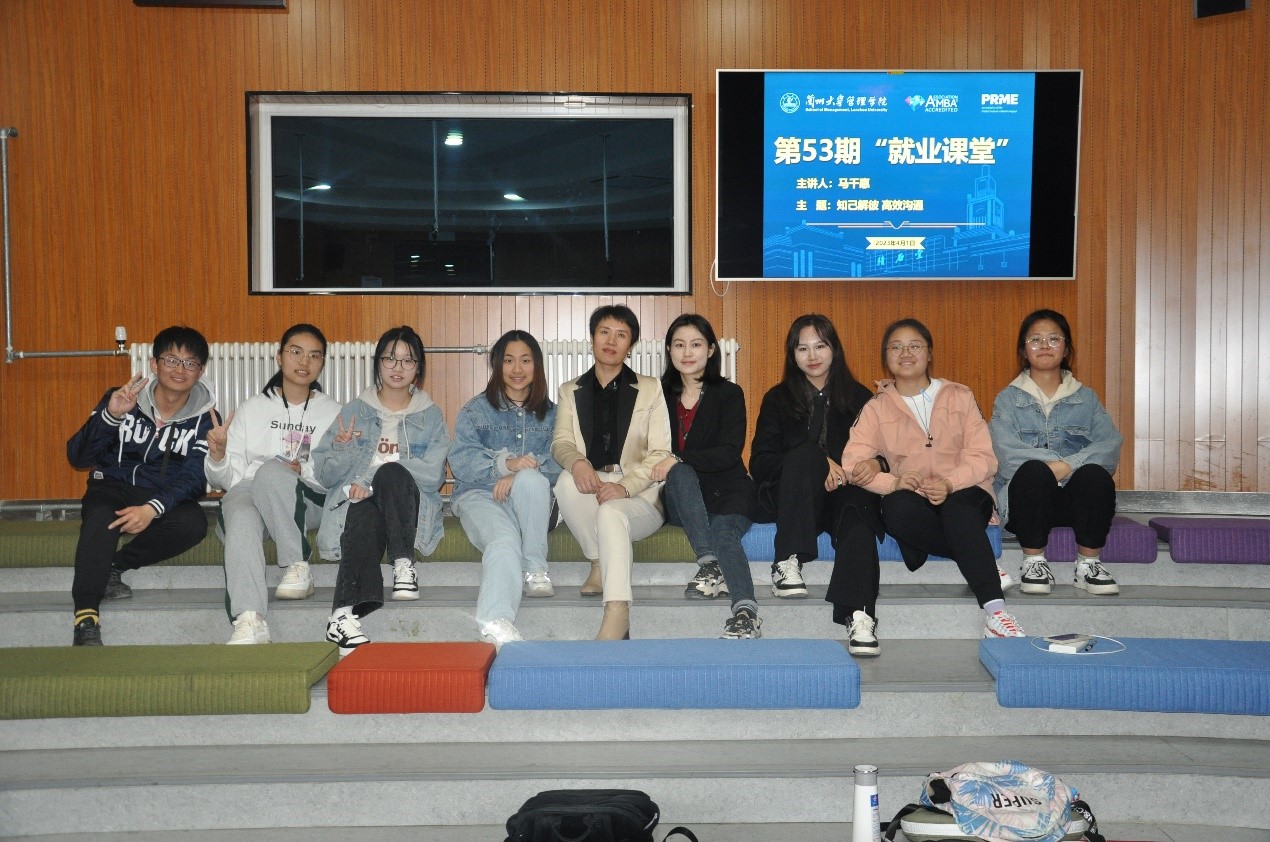 4月1日下午,管理学院在榆中校区秦岭堂B105教室举办了以“知己知彼,高效沟通”为主题的第53期“就业课堂”活动。本次活动的主讲嘉宾为管理学院2002级校友马千惠。