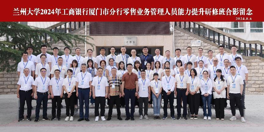 8月6日 ,工商银行厦门市分行零售业务管理人员能力提升研修班在兰州大学开班。中国工商银行厦门市分行私人银行中心总经理林奕吾,兰州大学管理学院党委副书记、副院长常韬出席开班式并讲话。来自工行厦门市分行各一级支行负责人及企业家客户共计53人参加本次培训。