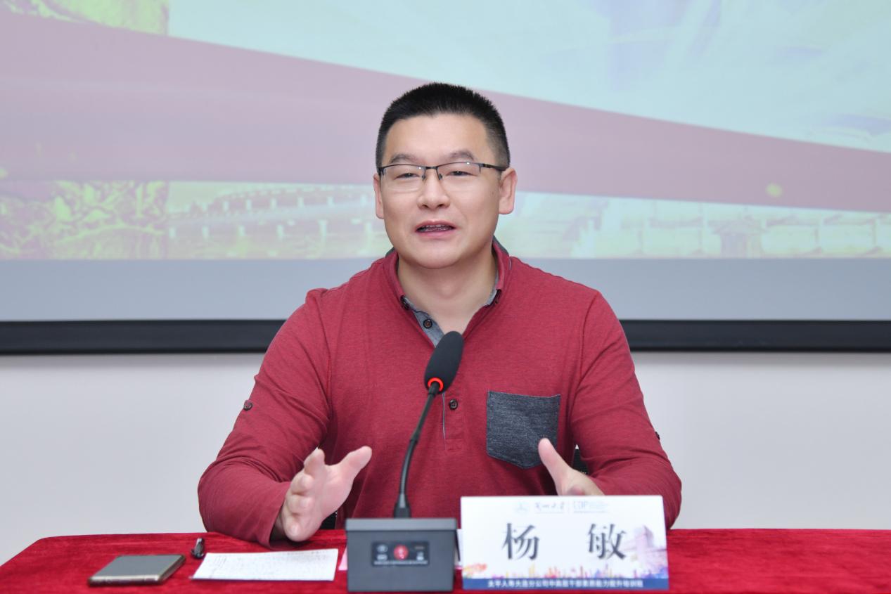 杨敏在发言中强调,兰州自古就是“联络四域、襟带万里”的交通枢纽和军事要塞,以“金城汤池”之意命名金城,素有“黄河明珠”的美誉,得益于丝绸之路,成为重要的交通要道、商埠重镇。兰州大学始终扎根祖国西部大地,不忘初心、牢记使命,培养了一大批杰出校友,继续书写教育强国的时代答卷,不断助力地方经济社会发展。他还表示,全体学员要遵守纪律、全心投入到本次培训中来,真正做到学有所思,学有所得。