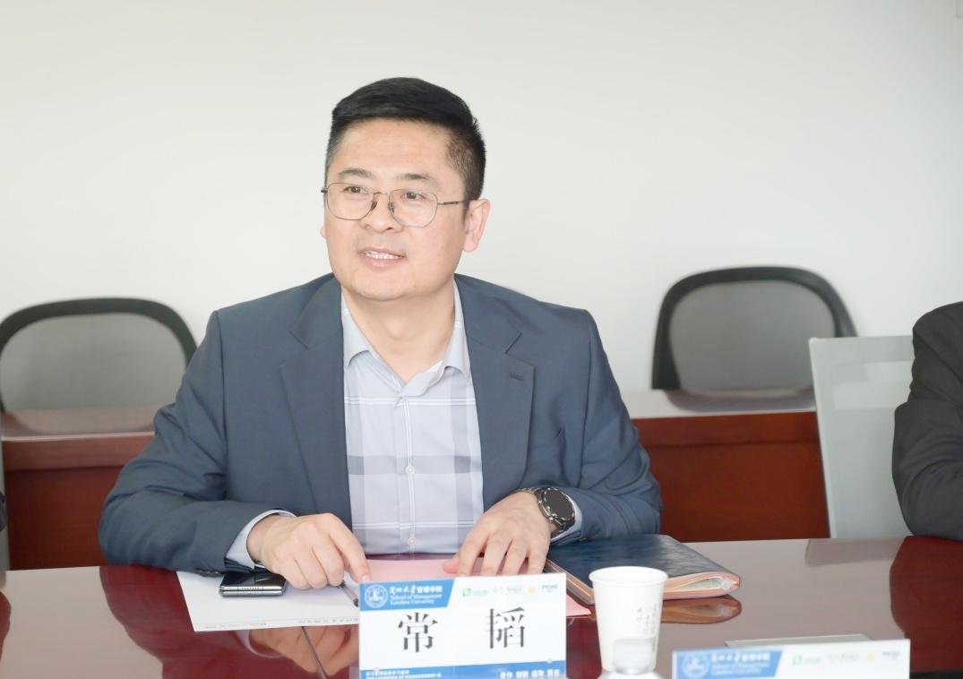 常韬对牛济军一行来访交流表示欢迎,对甘肃农垦亚盛条山分公司对学院的信任表示感谢。他表示,管理学院历经20年的发展,目前师资力量强大,教学科研等方面成绩显著。近些年来,依靠得天独厚的商管学科优势,坚持为政府、事业单位及企业提供培训咨询服务,不断助力企业和地方社会发展。