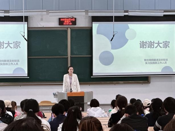 雷杰妮老师发表动员讲话。她指出,暑期实践是一次难得的经历,希望大家都能抓住机会,勇敢迈出这一步。在实践中磨砺自己,在探索中收获成长,特别鼓励在实践中运用学习到的专业知识,用青春的汗水书写属于管院人的精彩篇章!同时,雷老师再次重申了实践过程中的注意事项,包括安全问题、团队协作、与实践单位的沟通协调等方面,嘱咐同学们在出发前就做好充分的准备。
