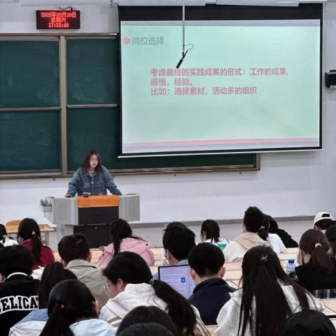 社会实践优秀代表严舒奕、吴欣然、刘思晗应邀分享经验。详细分享了如何进行实践项目选择、进行实践准备,在实践过程中如何应对困难、挖掘机遇、迎接挑战,用亲身经历生动地展现实践的深刻意义,让同学们对社会实践有了更真切的感知。与会学生感慨:“学姐的案例让我明白,社会实践不是打卡任务,而是用专业知识回应社会需求的成长旅程。”