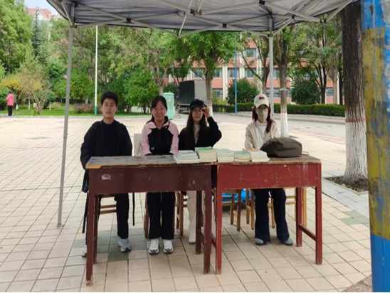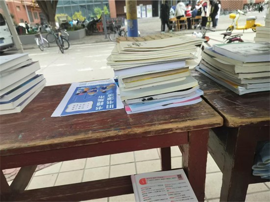 当清晨的阳光洒过桌面,浪漫的传递故事正式开启。在活动现场,志愿者们热情地邀请好奇的同学来了解此次活动及其核心目的:让温暖“咏”流传。桌子上的书籍涵盖了各个领域,如经济学,管理学,物理学,高数等,同时也有《长安的荔枝》等文学读物,涵盖范围广,可以满足同学们的多元化阅读需求。