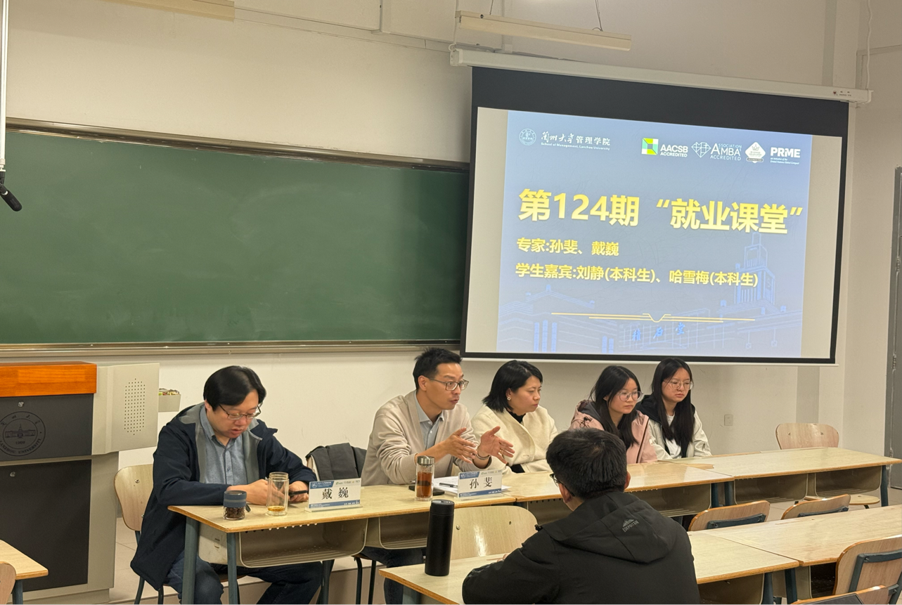 2025年10月31日,为切实解决学生专业选择困惑、夯实专业基础,管理学院开展第124期就业课堂活动暨专业认知座谈会系列活动——行政管理专业认知座谈会在天山堂B303教室成功举办。本次讲座荣幸邀请到了管理学院公共管理系教授何文盛老师、孙斐老师,副教授戴巍老师以及行政管理专业(含政府绩效管理方向)优秀学生代表哈雪梅同学、刘静同学担任主讲嘉宾。三位深耕专业领域多年的资深专家教师与两位在学习及实践中积累了丰富经验的优秀学生携手,分别从各自擅长的赛道出发,用扎实的专业知识为现场同学们进行行政管理专业的深度解读,同时结合当下行业发展态势,从发展前景、专业优势、能力提升等多个维度,为大家构建了全面且贴合实际的发展规划框架,让每一位参与者都收获颇丰,对未来职业发展有了更清晰的认知与期待。