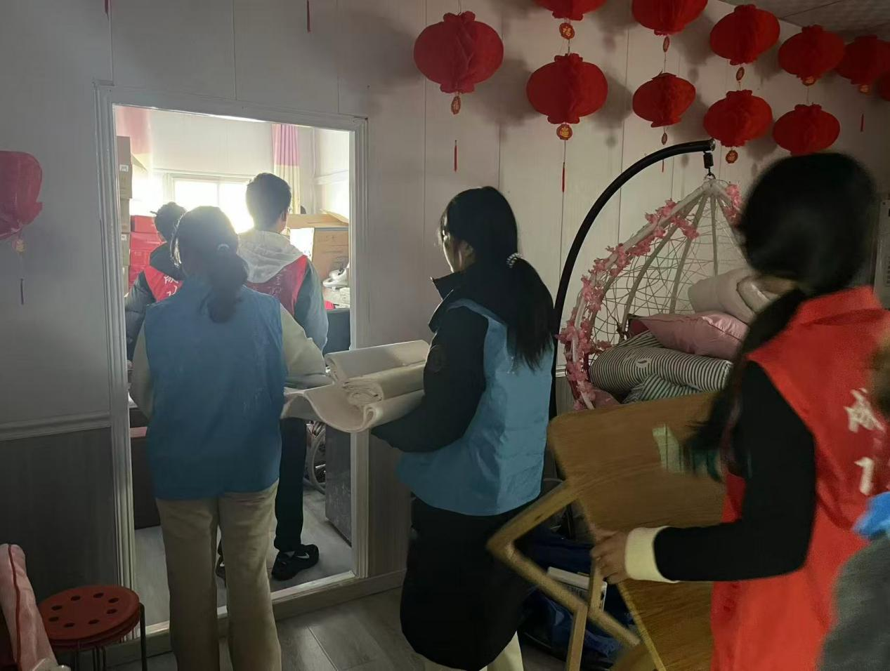 任务分配就绪后,志愿者们迅速投入行动。手持抹布、纸巾等清洁工具,大家细致地擦拭着橱柜、房门的每一处角落,哪怕是不易察觉的细微污渍,也绝不轻易放过。在他们眼中,这份看似平凡的打扫工作,承载着为老人们营造整洁舒适生活环境的责任。汗水顺着脸颊滑落,却浇灌出欣慰的笑容——这份汗水,是志愿服务最珍贵的勋章;这份笑容,是奉献精神最动人的写照。