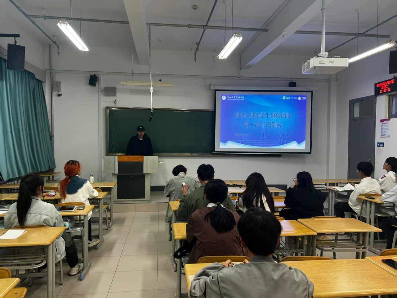 为明确新学期工作方向、提升团队整体业务能力,9月23日晚,管理学院学生事务团队于天山堂A104教室召开2025年秋季学期第一次工作例会暨新成员培训会议。会议由学生事务团队负责人孙韫哲主持,学生事务助理负责人李煜宸、教学事务助理负责人李至一、实验室助理李小昌及团队全体成员全程参与,会议围绕“工作要求明确”与“新成员培训指导”两大核心议题展开。